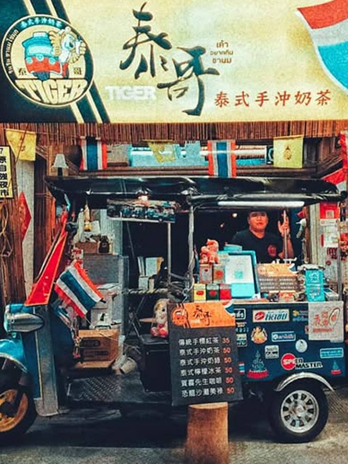夜市王-泰哥泰式手沖奶茶 以最具泰國特色的嘟嘟車做為營業空間,將道地古法的泰式奶茶從原料到器具完整引進台灣,以泰式手標茶沖製,將道地泰國風味奶茶重現花蓮,保留泰式風味,杯杯現沖,呈現完整泰式風情。 |